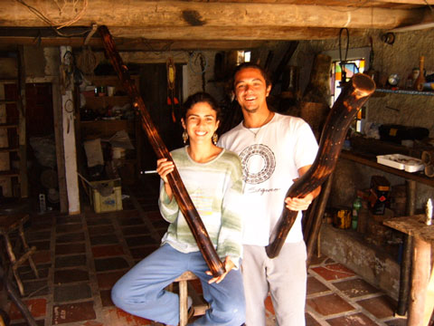 O "PAU DE CHUVA" é um instrumento musical da família dos Idiofônicos, que são aqueles instrumentos de percussão e ritmo com um som musicalmente impreciso, próximo ao que chamamos de ruído. Muitos destes instrumentos têm forte presença em cerimônias religiosas ou na prática de rituais Xamânicos, como é o caso do "Pau-de-chuva" e do "Maracá" indígenas, o segundo, com o mesmo nome ("Maraca") está também presente em sessões de "Santería" cubana que geraram ritmos populares como o Som, o Mambo, etc, denunciando alguma influencia indígena na música negra cubana. São desta família também diversos tipos de chocalhos africanos, alguns formados apenas por um corpo qualquer revestido com uma malha de fios e contas, como os "Xequerês" e os "Afoxés". As variedades são inúmeras. Aqui na Enseada do Brito fazemos nossos instrumentos com os restos de uma planta, a PITEIRA, que dá um som único ao intrumento. |